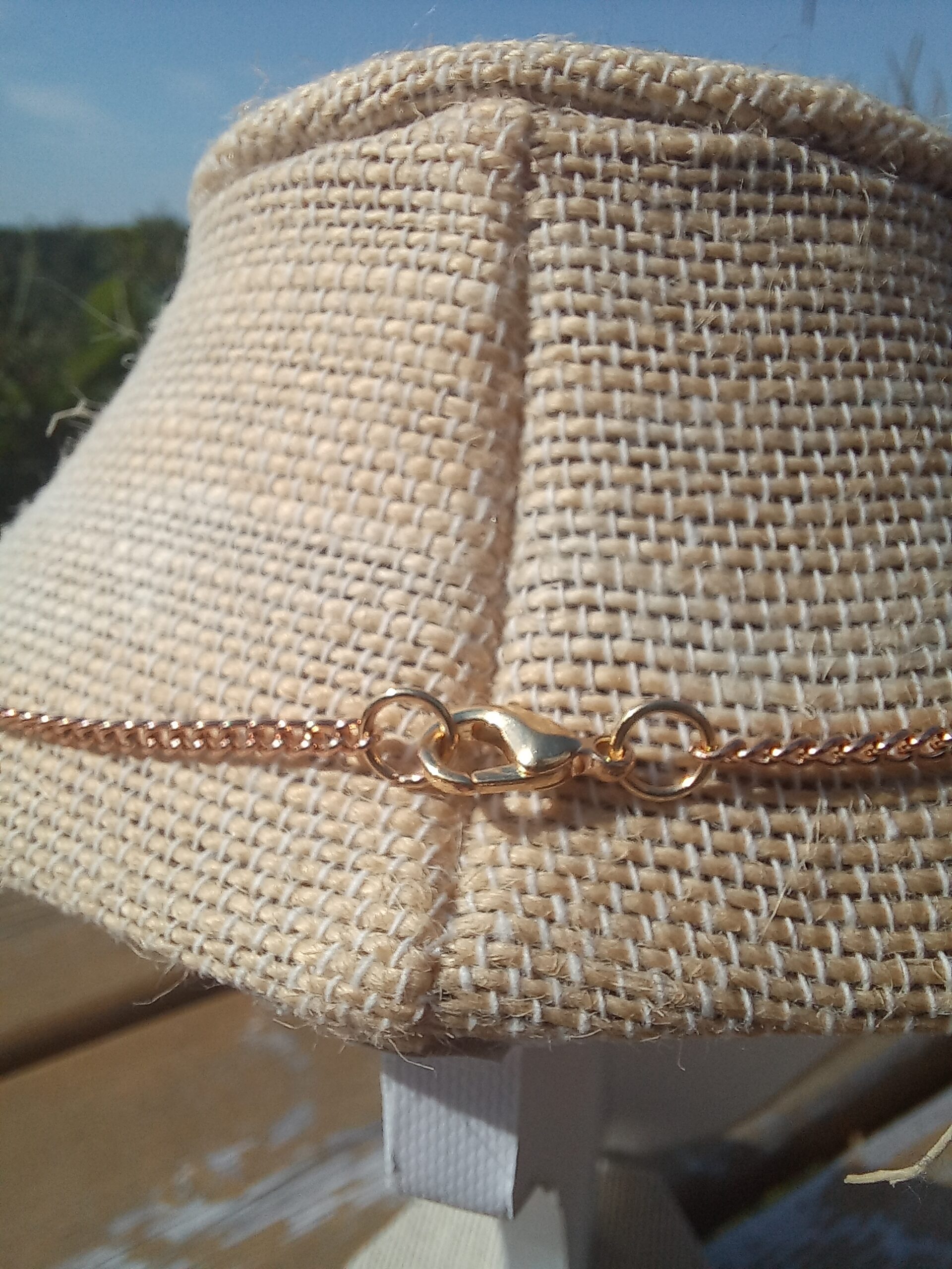 This necklace is available in either gold or silver.