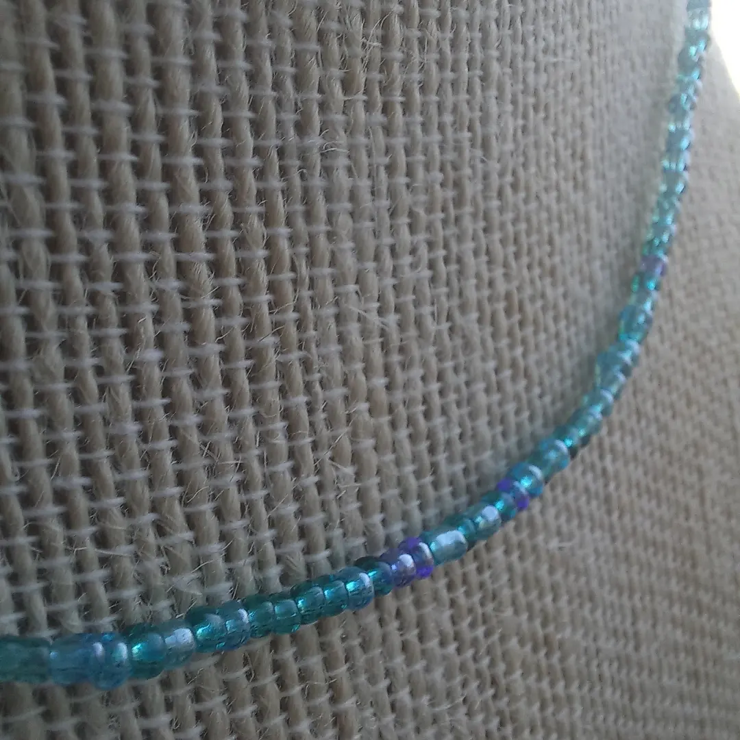 This beautiful necklace is made with small glass beads, sterling silver clasps and stretch cord. Coming soon in different colours!